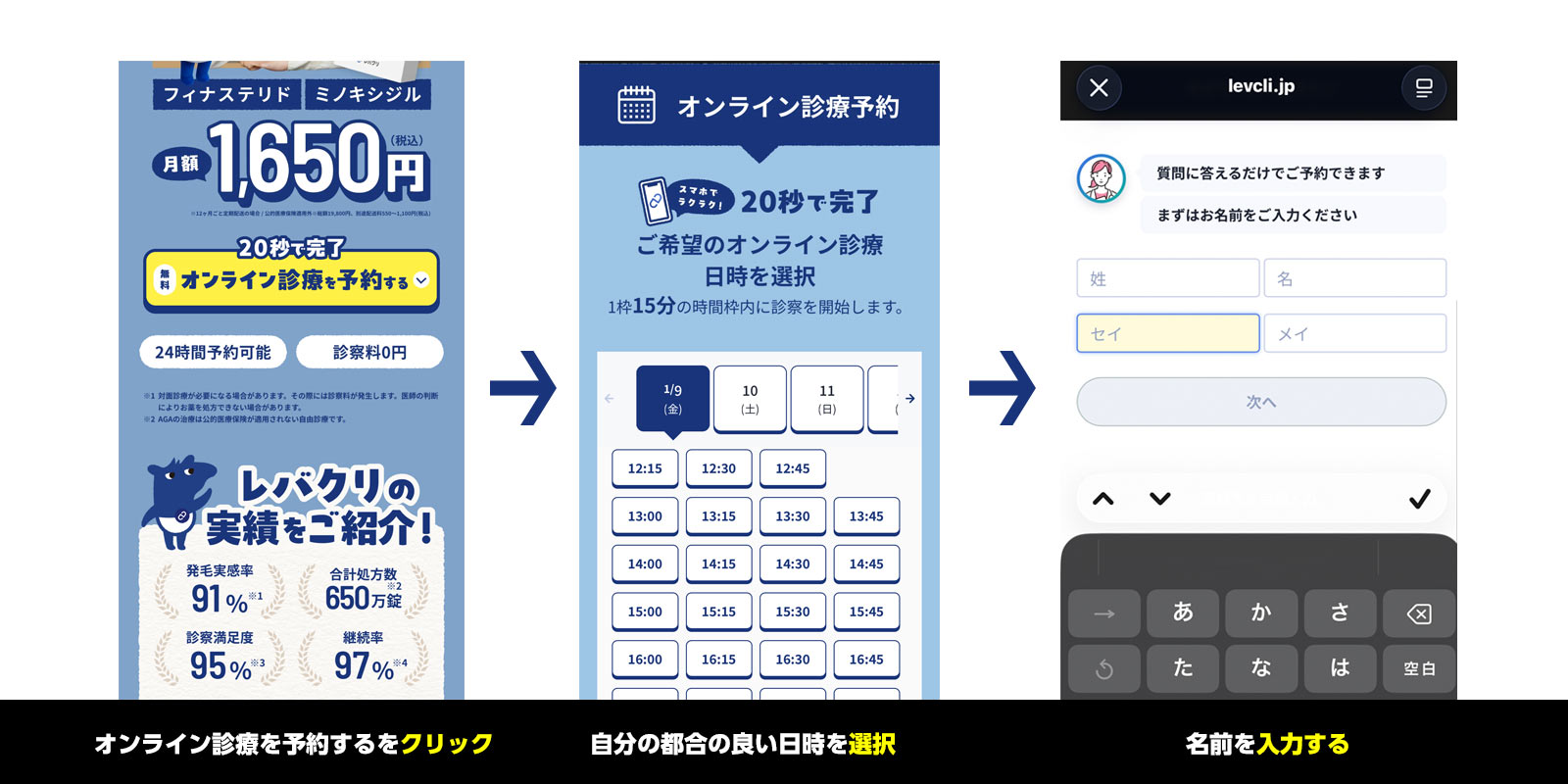 とても簡単に予約完了するので、薄毛が気になる方はこの瞬間に申し込んでみてください。(PCでもスマホからでも申し込めます)本当に爆速で終りますよw