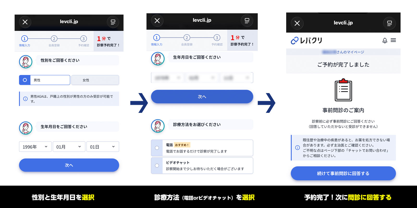 2. 事前問診への回答(所要時間:約3分)