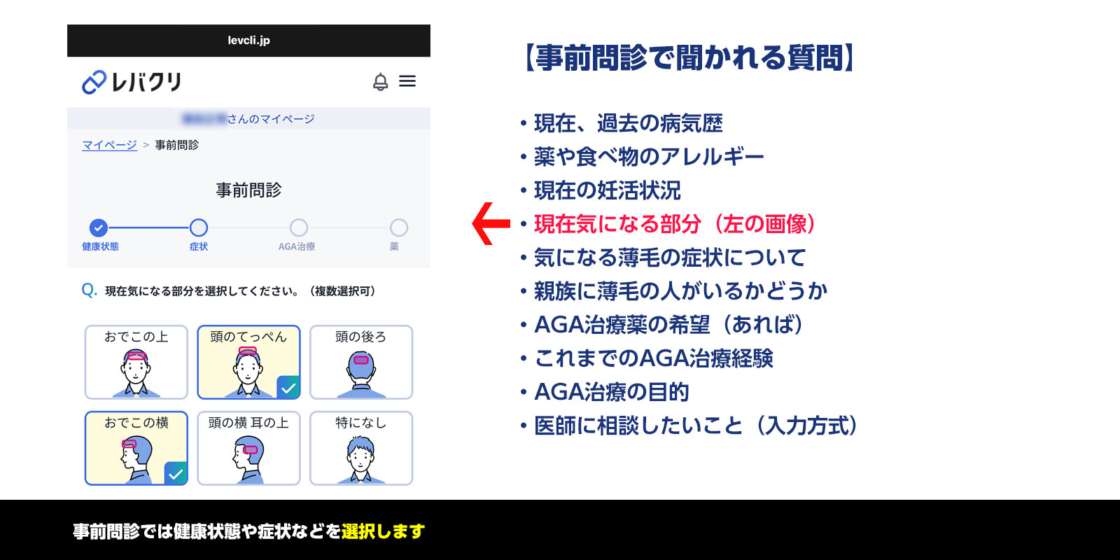 実際に事前問診で回答した項目がこちら